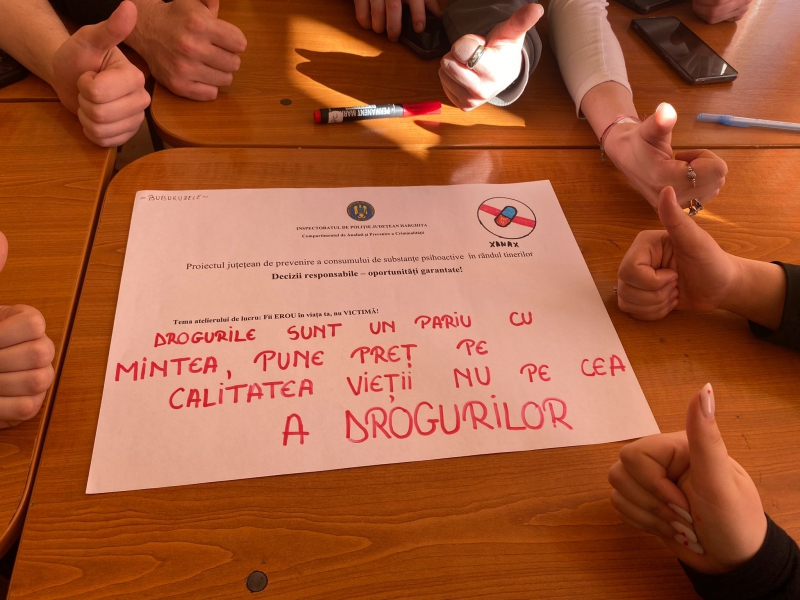 Activitățile s-au desfășurat într-o atmosferă interactivă, iar informațiile prezentate cu privire la consecințele consumului de alcool, tutun și droguri au captat atenția tinerilor. Aceștia au înțeles mesajul transmis de către polițiști, contribuind la realizarea unor mesaje pozitive care promovează o viață sănătoasă și de calitate. Peste 150 de elevi ai claselor a XI-a și a XII-a au participat la aceste activități.