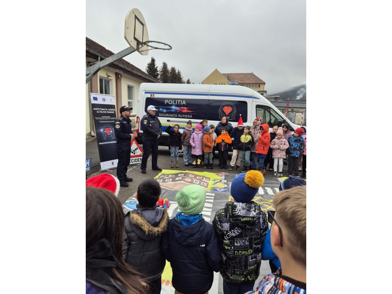 APROXIMATIV 100 DE COPII DIN BĂLAN, VIZITAȚI DE POLIȚIȘTI ÎN CADRUL UNEI ACȚIUNI DEDICATE SIGURANȚEI RUTIERE