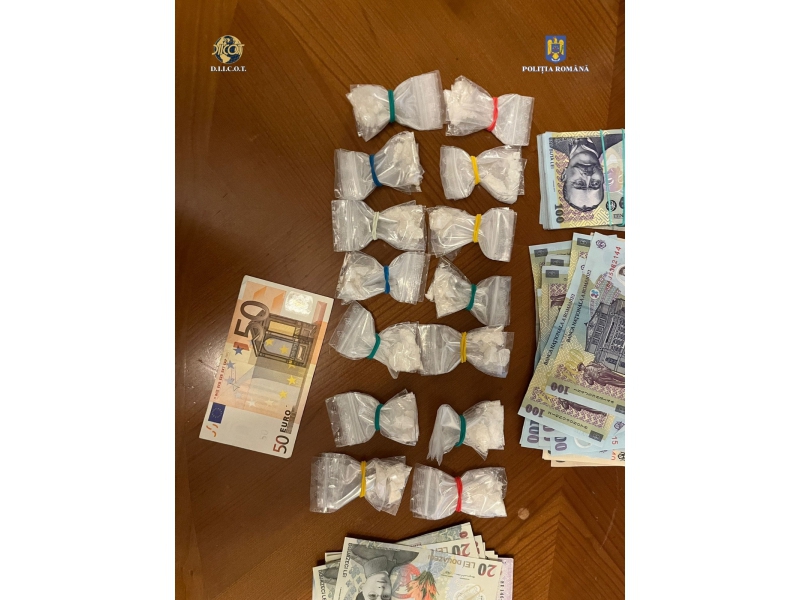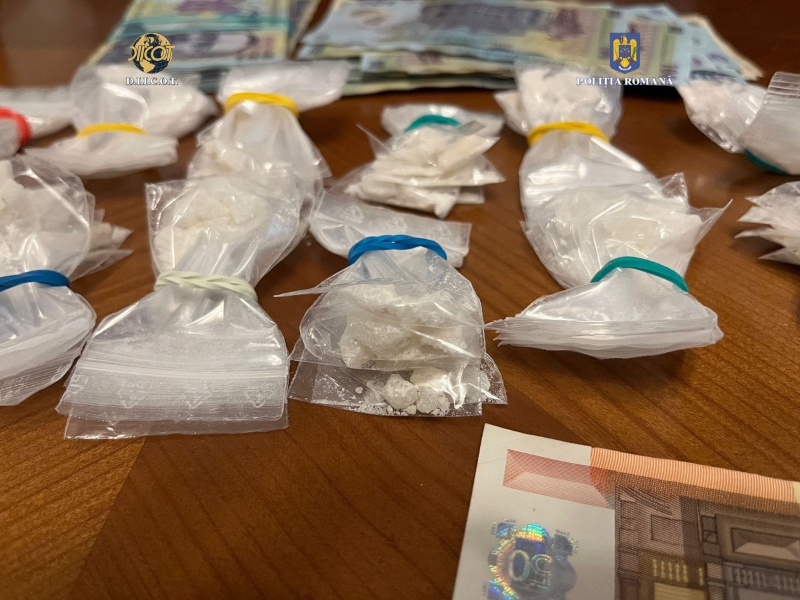 La aceeași dată, în urma perchezițiilor efectuate, în locațiile folosite de bărbatul cercetat, au fost descoperite și ridicate 78 de pliculețe conținând substanțe psihoactive (2MMC) și canabis, 835 de pliculețe tip ziplock din material plastic transparent fără conținut, pliculețe conținând urme de substanță pulverulentă, 3 minicântare electronice de mare precizie, 9.600 de lei, telefoane mobile și două pistoale cu gaz.