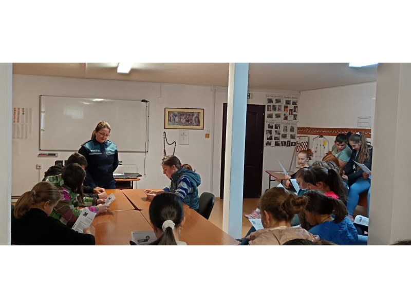 Celor aproximativ 400 de beneficiari, participanți la întâlnirea cu polițiștii, le-au fost prezentate aspecte privind consecințele juridice ale consumului de substanțe interzise, licite și ilicite, modalități de prevenire a unui astfel de comportament, ce înseamnă și cum poate fi recunoscut bullying-ul, precum și necesitatea respectării regulilor de circulație în momentul deplasării pe drumurile publice, atât în calitate de pietoni, bicicliști sau cu alt mijloc de transport.