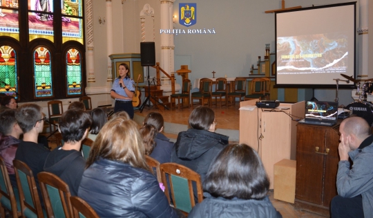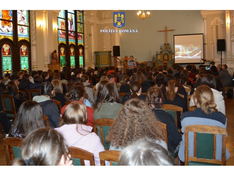 Activități preventive desfășurate de polițiști și medici specialiști cu elevi de liceu cu ocazia Zilei Naționale fără Tutun