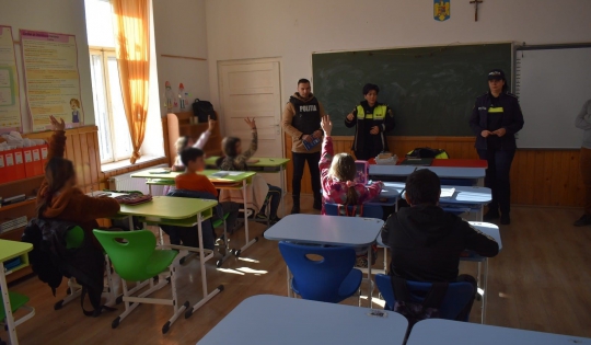 Aproximativ 80 de elevi de gimnaziu au purtat discuții interactive cu polițiștii, le-au enumerat acestora responsabilitățile pe care le au în calitate de elevi, modul de comportare atât la școală, cât și pe traseul de deplasare înspre/dinspre casă.