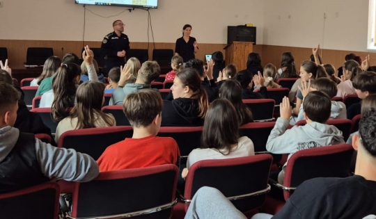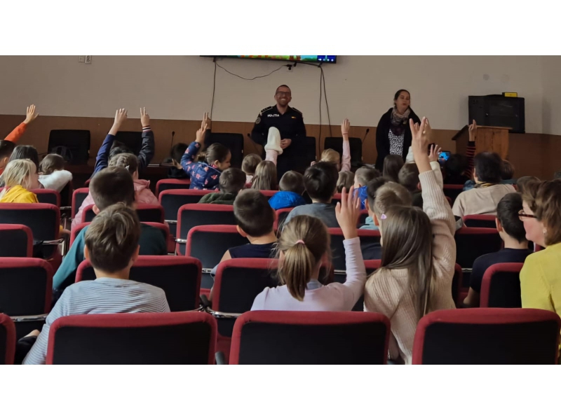 Astăzi, polițiștii Compartimentului de Analiză și Prevenirea Criminalității din cadrul Inspectoratului de Poliție Județean Harghita au desfășurat activități de pregătire antivictimală cu aproximativ 130 de elevi din ciclul primar și gimnazial, ai unei unități de învățământ din Borsec, având ca temă principală siguranța online.