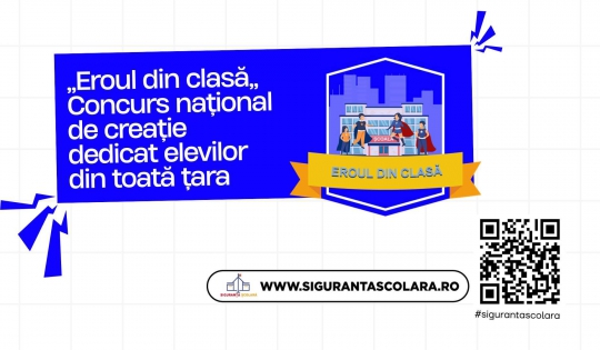 În cadrul Proiectului național ,,Scoate violența școlară din anonimat!” derulat în anul școlar 2025-2026, în perioada ianuarie – aprilie 2026, se desfășoară Concursul național de creație ,,Eroul din clasă” ce are ca scop încurajarea creativității și originalității, îmbunătățirea abilităților de colaborare, comunicare și design grafic, stimularea gândirii critice, cultivarea și dezvoltarea spiritului de competiție și fair-play, cât și provocarea elevilor de a contribui la crearea unei atmosfere mai sigure și mai respectuoase în școală.